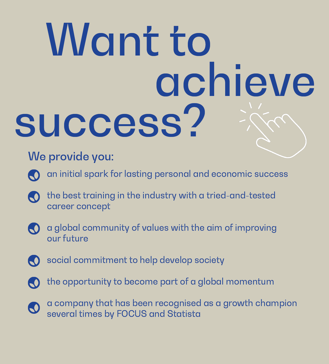 In today’s job market, maximum flexibility is a must to stand a chance. Even positions within large international corporations are no longer secure. Job requirements are constantly evolving due to globalization, digitalization, and automation. New jobs are created while others become obsolete. At the same time, there is a growing demand for a value-oriented society, work-life balance, and jobs that adapt flexibly to personal life situations. The hajoona Personal Franchise concept offers solutions here as well. It combines your individual freedom with the security of a proven business system.